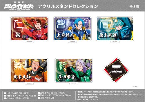 人類の危機に駆け付けた五人の若きサムライたち。そのサムライの心とともに纏った鎧姿を集め、セレクショングッズとして全国のアニメグッズショップ及びショップECサイトにて販売!