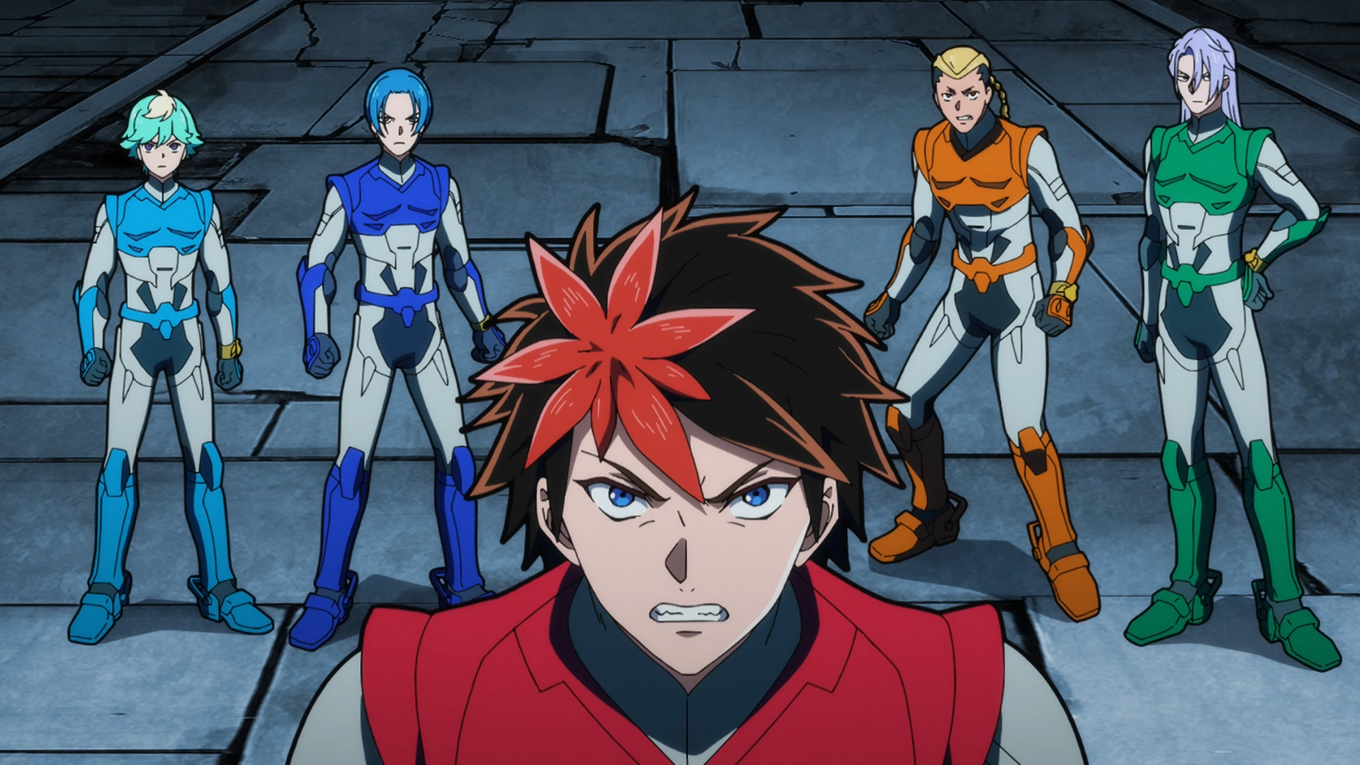 あらすじ STORY 第1話 第2話 第3話 第4話 第5話 第6話 第7話 第8話 第9話 第10話 第11話 第11話 「履陀鞍」 あらすじ 遂に覇皇帝を発動させ、圧倒的な力で残酷な運命を乗り越える凱たち。犠牲になった仲間を想い、自分たちの戦いに疑問を抱き始めるサスケ。羅真我を目前にした凱たちに突き付けられる35年前の衝撃の事実。そして盛大な宴の幕が開き、羅真我との直接対決が始まる――。